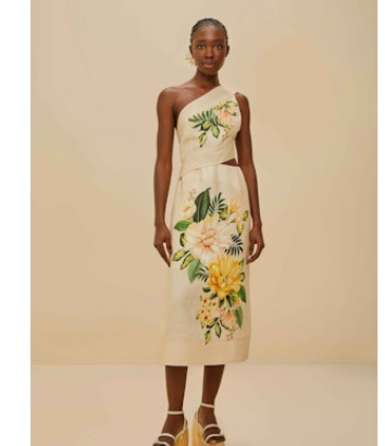 The Garden Cascade Sand Midi Dress from Farm Rio unfolds like a sunlit stroll through a secret garden. In soft, sandy tones, its delicate floral motifs cascade down flowing fabric, lending the dress an air of quiet drama and botanical romance. The midi length gives it a graceful, versatile silhouette, elegant for dinner, breezy for daytime, and the lightweight linen construction ensures it moves with you, not against you. Pair it with minimalist accessories to let the print shine, or layer with a lightweight jacket for cooler evenings.